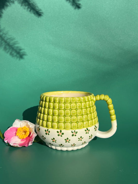 PREORDER Ludo Mug with Big Dimple Top in Green Flower