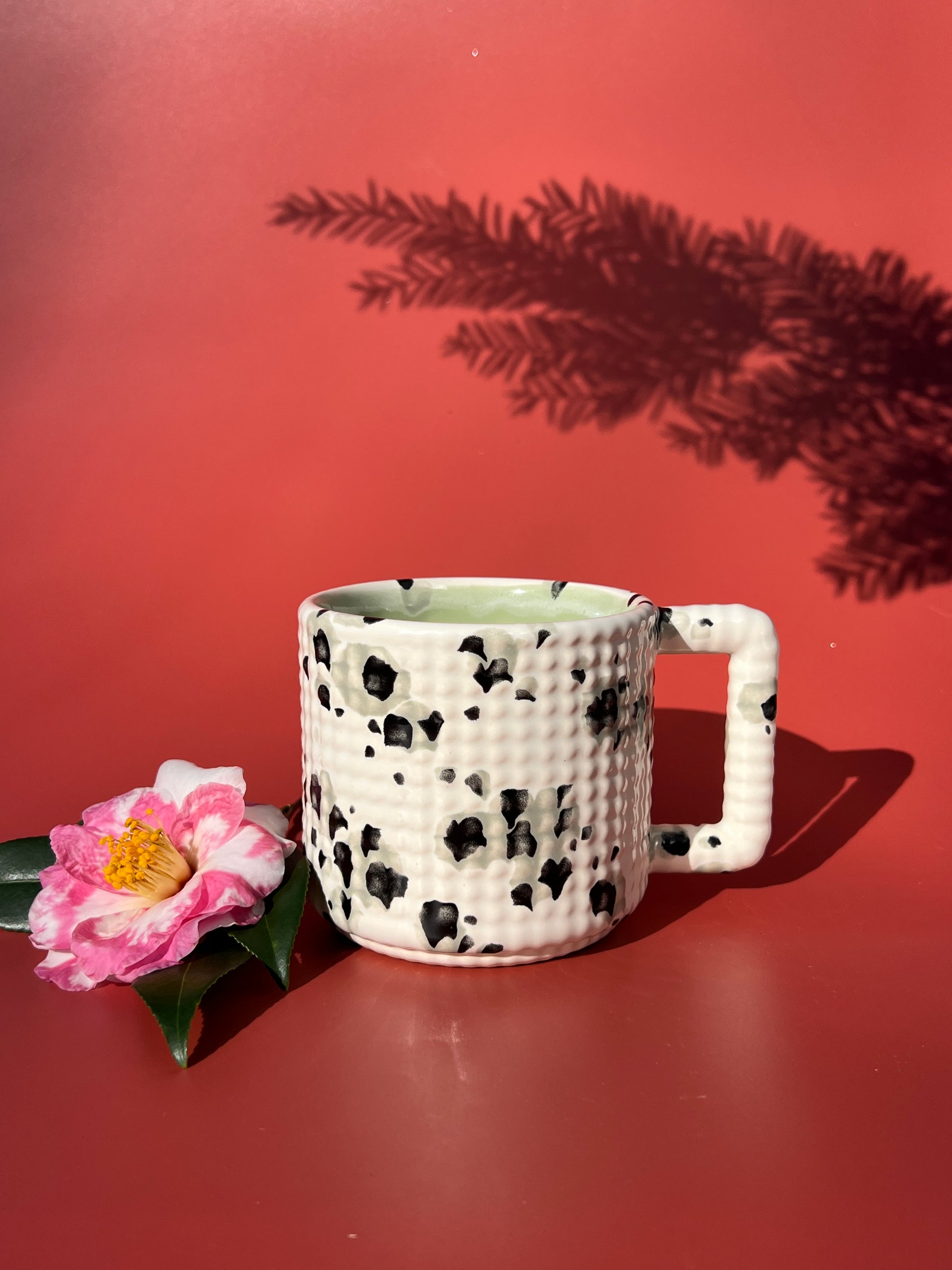 Gozarian Mug with Little Dimple Texture in White and Black Splotch