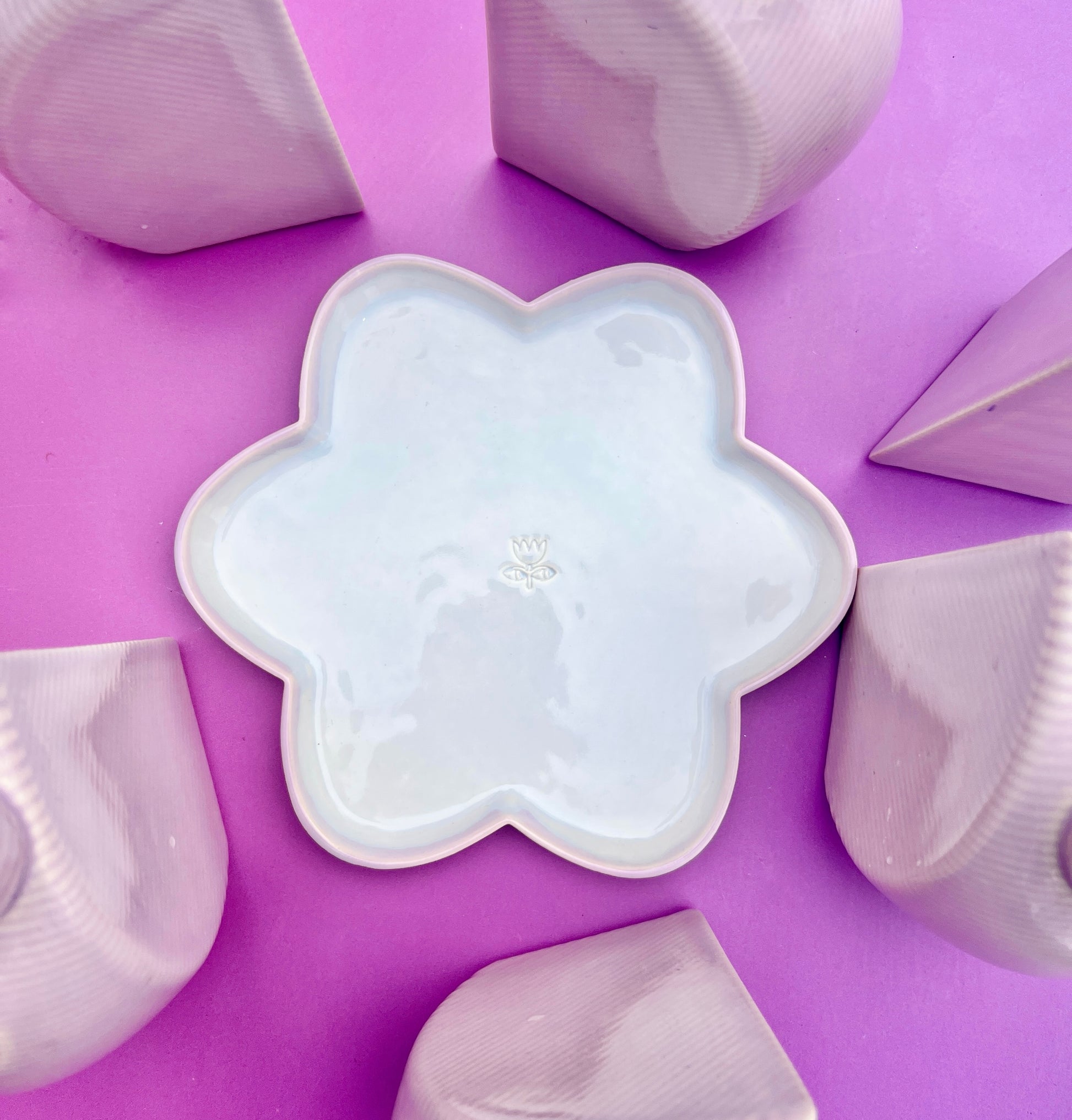For this PREORDER please feel free to email us with requests for particular colors. Solid colors only, and we can do accent colors inside the tray and inside the vase openings. Works best with lighter colors. The one pictured is in lavender and periwinkle.
